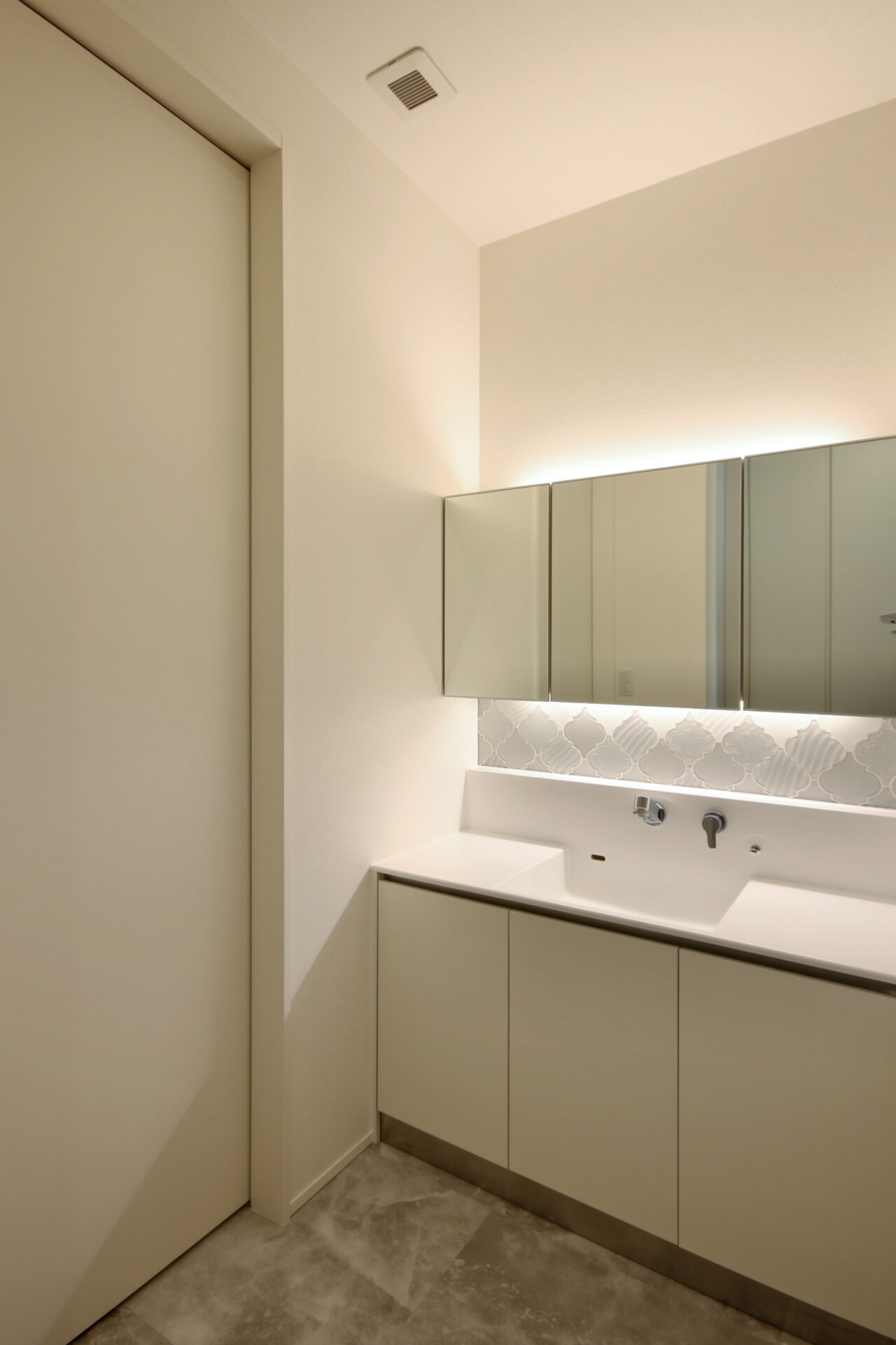 家全体を快適に保つ「オンレイ床暖システム」を採用。玄関から脱衣室まで、夏はさらりと涼しく冬は包み込むような暖かさ。メンテナンスも簡単で、心地よさが続きます。