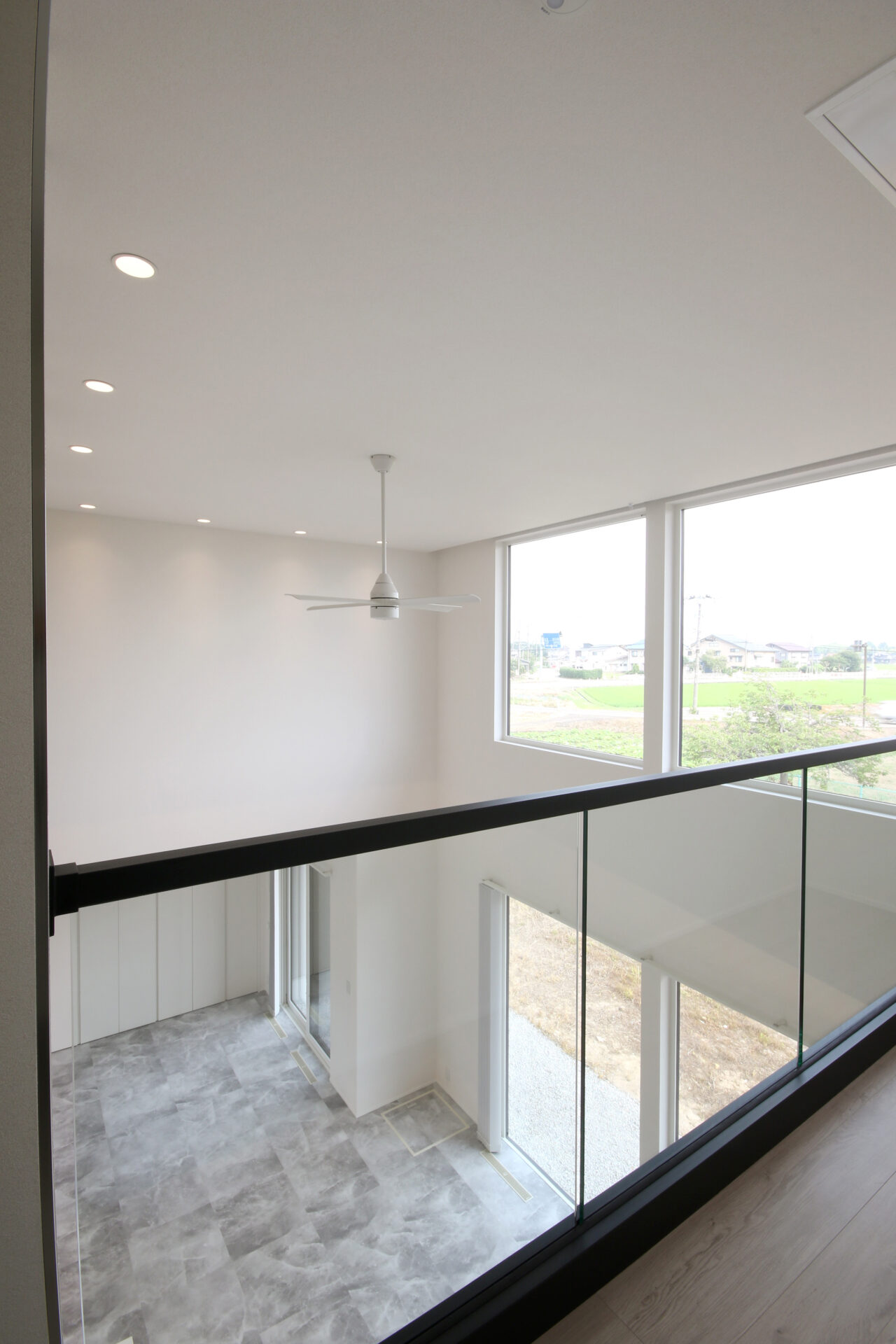 8帖の大きな吹き抜けがもたらすのは、光あふれる開放的な空間。日々の暮らしにゆとりと心地よさを感じられる、ダイナミックな設計が魅力です。
