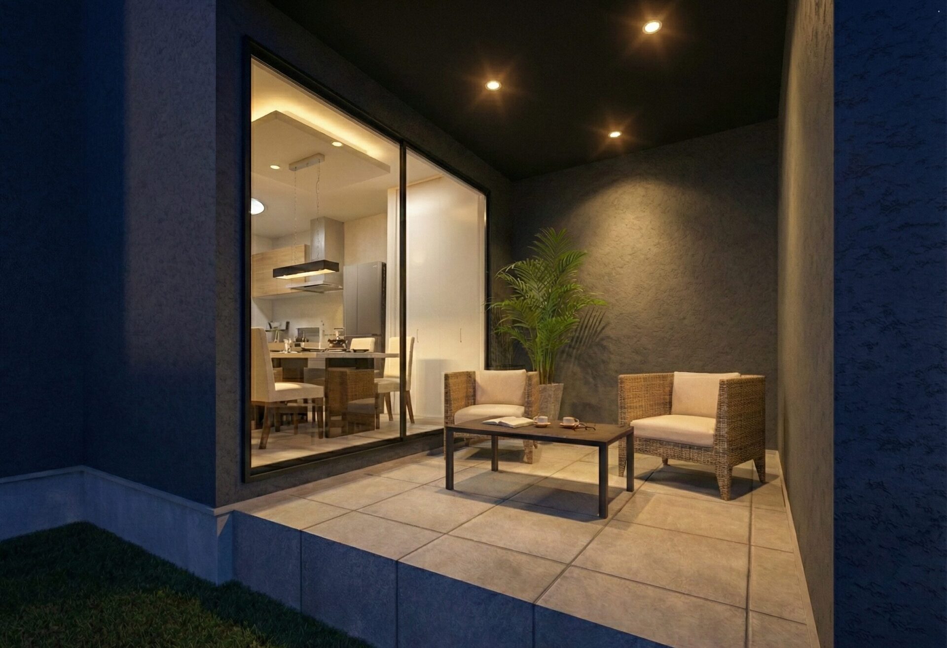 外部からの視線を気にせず、光と風を取り込めるインナーテラス。室内と緩やかにつながり、くつろぎの時間や家族のひとときを、より豊かに楽しめる空間です。