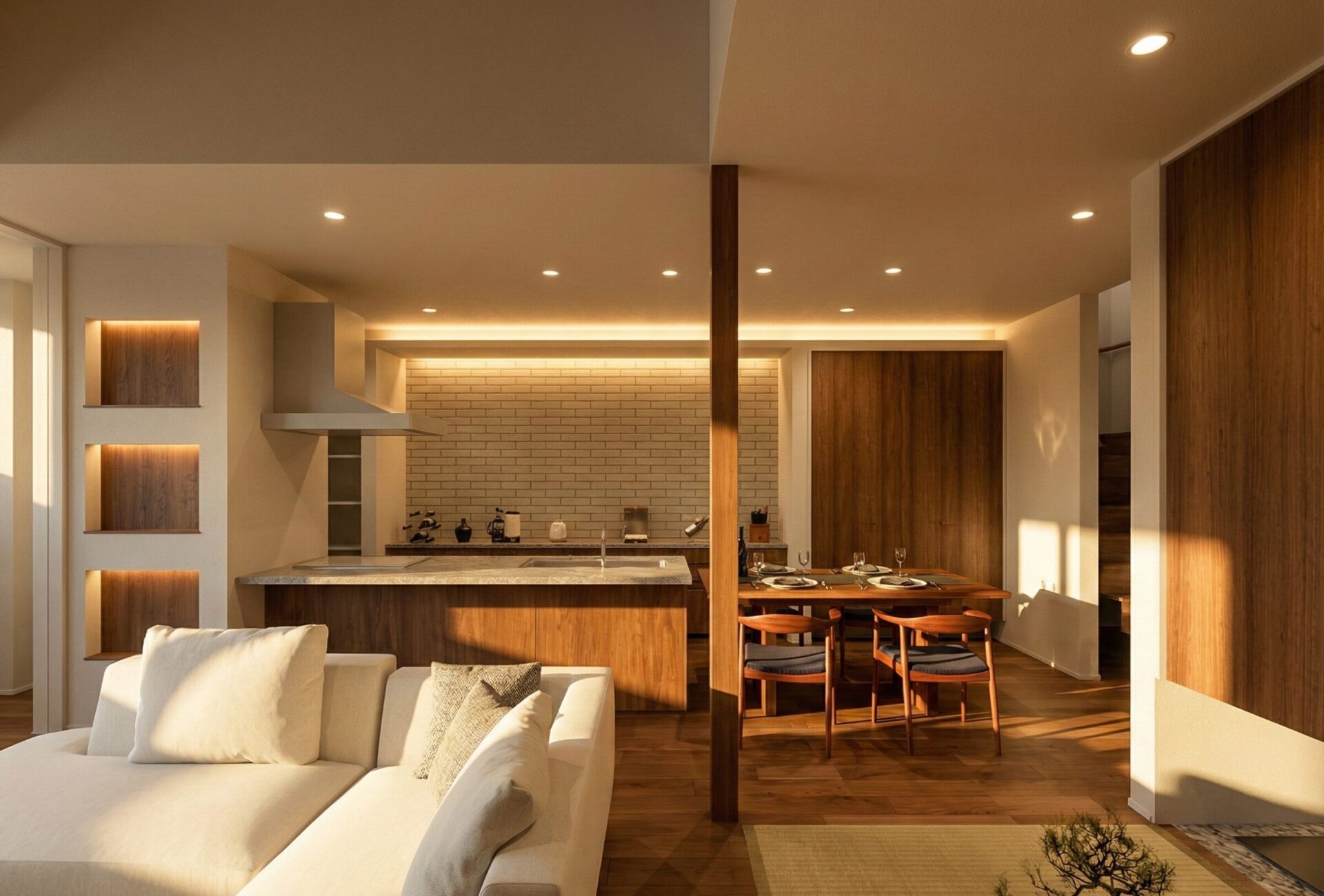 リビングに寄り添う畳スペースは、くつろぎと実用性を備えた空間。読書やひと休みの場としてはもちろん、来客時にも重宝し、日常にゆとりをもたらします。