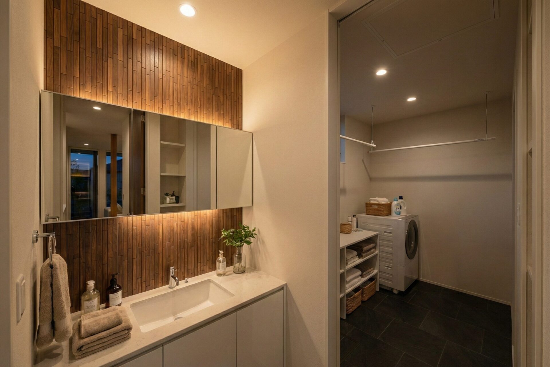 家事動線をコンパクトにまとめることで、毎日の負担を軽減。移動や作業がスムーズになり、時間にも気持ちにもゆとりが生まれる間取りです。